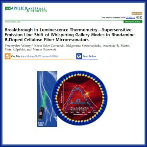 W artykule pt. „Breakthrough in Luminescence Thermometry – Supersensitive Emission Line Shift of Whispering Gallery Modes in Rhodamine B-Doped Cellulose Fiber Microresonators” autorzy prezentują innowacyjne rozwiązanie umożliwiające zdalny i precyzyjny pomiar temperatury – nawet 27-krotnie dokładniejszy niż w przypadku dotychczas znanych materiałów.